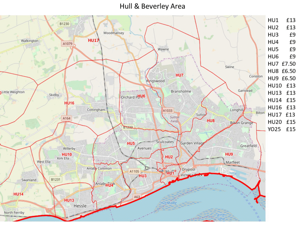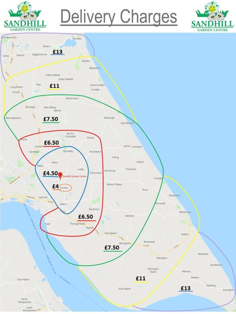 We offer delivery to the local area ranging from Hornsea, Easington, Hull, Beverley, Melton, North Ferriby, Burshill and so on. Our prices for delivery start at £4 for Preston and increase based on distance.
